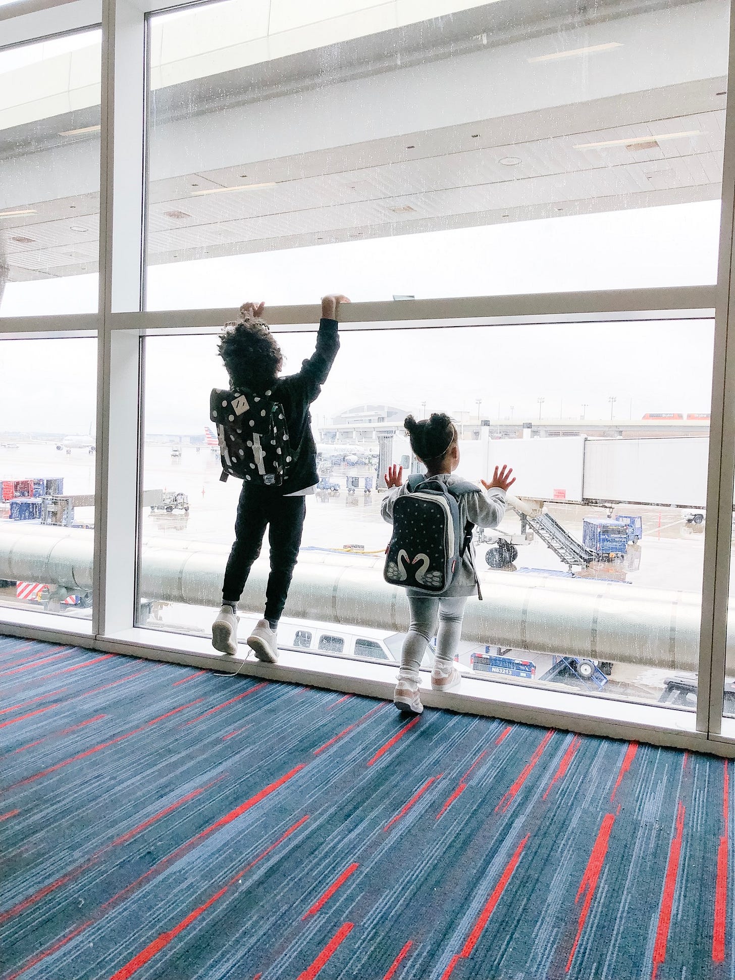 When we fly lots of variables are up in the air (I’m sorry, I couldn’t resist) but we do a few things wihtout fail every. single. time. We always try to book as early as possible while coinciding with a naptime for the youngest babe at the time. After 15 years of traveling almost constantly as a couple and almost nine years of flying with kids, we’ve learned the hard way that flights are much more likely to be delayed or cancelled past noon than early in the morning so that’s our go-to. We have each kid carry their own backpack and roll their little suitcase if they’r able and everyone gets a set of headphones, a couple activities (think stickers, an activity book, a coloring book with colored pencils…) a lunch box and some snacks they have to ask permission to dig into. In my tote bag, I keep extra snacks, “travel gum” (a fun pack of gum they pick out because it’s the only time they’re allowed to have anything other than pur gum) and a few other bags. The first is what I call “the boo boo bag” which has things like elderberry, fever patches, natural pain reliever, bandages, cough drops, probiotics and allll the things. The other bag within the bag has—shocker—more bags, wipes, sanitizers, paper towels and mom things. Here are some extra flight tips: